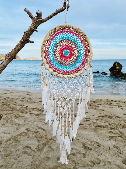 Each dream catcher is thoughtfully embellished with sacred items like vibrant feathers and intricate beads, making every piece unique. These elements channel positive energy while safeguarding your space from unwanted dreams or spirits.